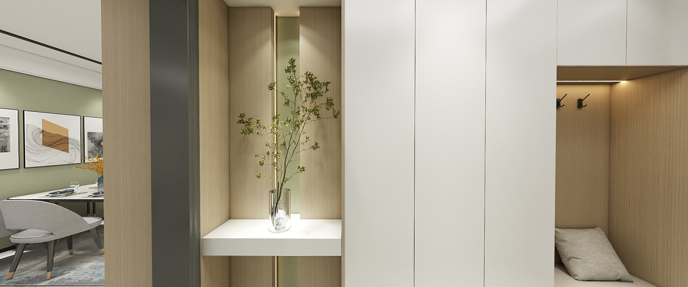 隨著極簡風的盛行,人們在家裝時更加傾向于刪繁就簡,因此,免拉手門板在全屋定制中受到追捧,其簡約而不失功能,整體高級、時尚、質感的視覺效果,成為眾多簡約風家庭的選擇。