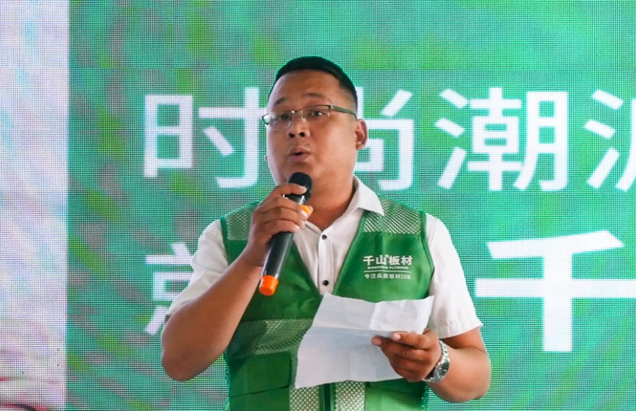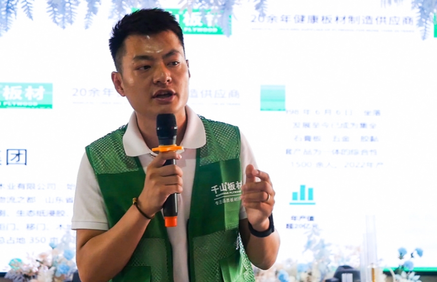 千山板材北方大區(qū)負(fù)責(zé)人史生平致辭,史總分享了千山板材對(duì)家具板質(zhì)量和技術(shù)的把控,希望帶給消費(fèi)者朋友們一個(gè)健康、環(huán)保、舒適的家庭環(huán)境。