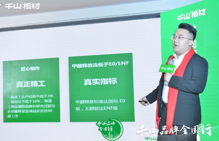千山品牌事業(yè)部總經(jīng)理王松致辭。王總講到,正如全國行的主題“時(shí)尚領(lǐng)航 品質(zhì)筑家”,千山將在產(chǎn)品端持續(xù)發(fā)力,讓2.0品牌定位真正落地,通過產(chǎn)品和渠道的雙賦能,獲得市場高度認(rèn)可。