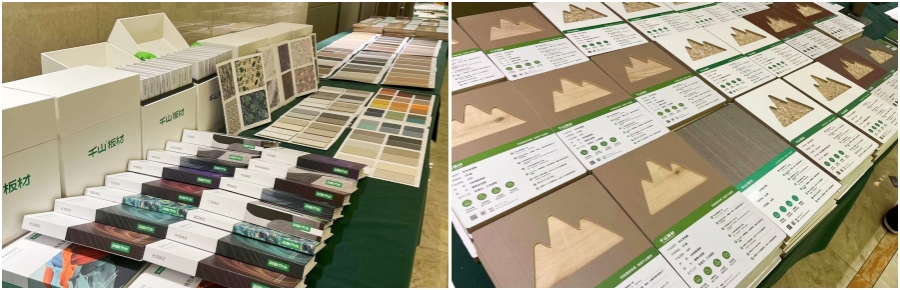 千山板材華南區(qū)大區(qū)經(jīng)理倪磊為大家詳細介紹了千山的產(chǎn)品體系、2024年6大系列花色以及千山板材在環(huán)保、工藝等方面的產(chǎn)品優(yōu)勢,讓嘉賓們對千山有了更深入的了解。
