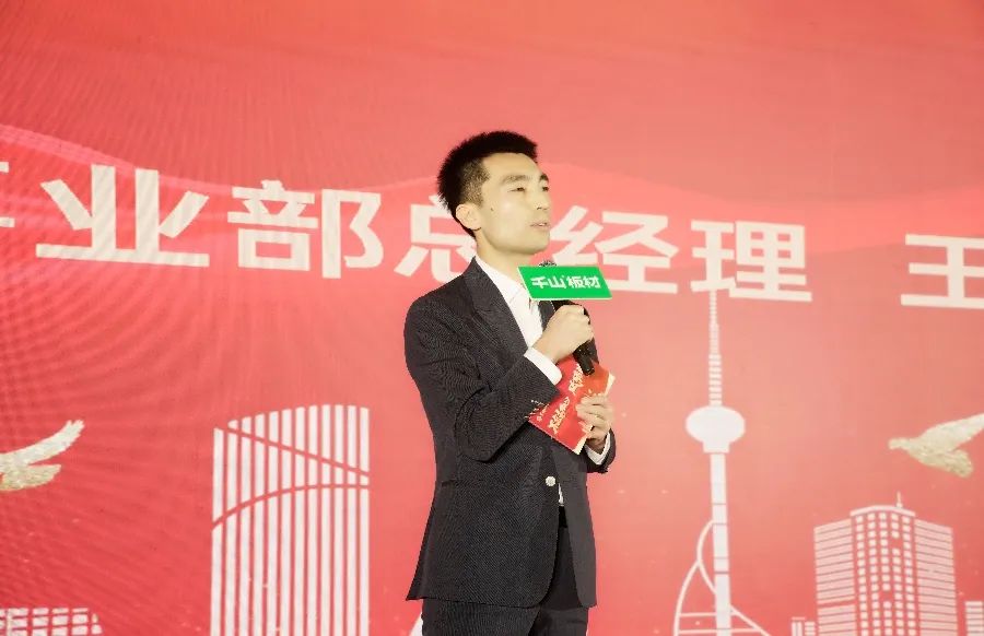 生態板事業部總經理邱佃樓發表講話。邱總感慨的講到,2023年,千山現代化生產工廠拔地而起,全新的智能化、數控化生產設備投入使用,為產能、效率的雙提升打下了堅實的基礎。產品是品牌發展的根基,生產是銷售的后盾,生態板事業部將不斷革新技術,全力以赴助力集團發展。