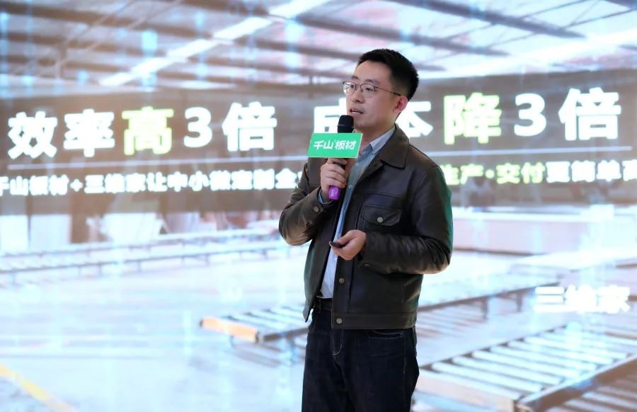 三維家山東大區經理李清帥詳細介紹了三維家前后端一體化的貫通。李經理分享到,三維家一體化實現銷售前端與生產后端的數字化、高效化生產,三維家與千山板材的深度合作,必將助力終端,實現共贏。