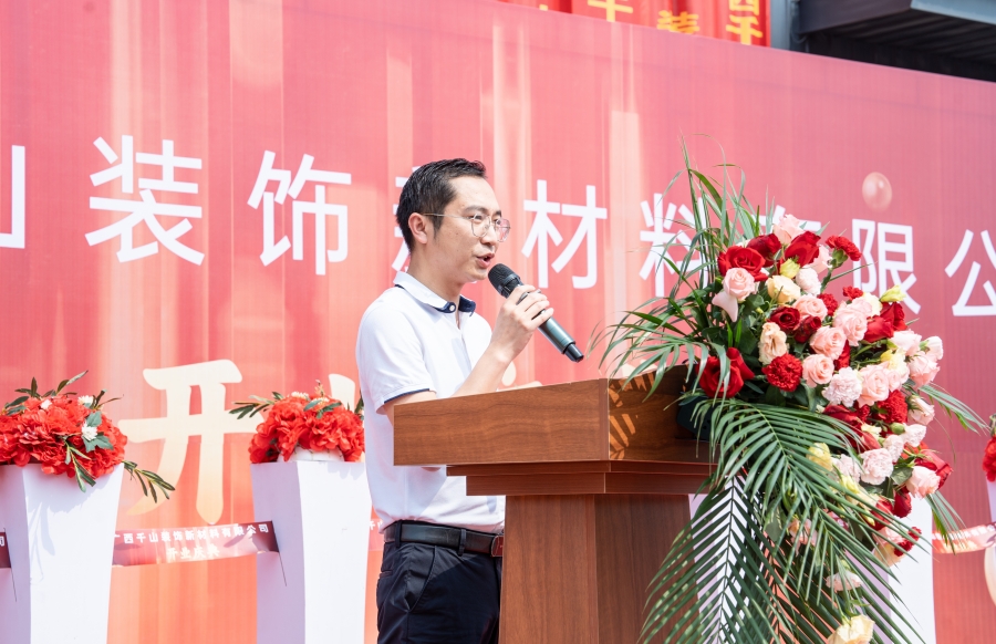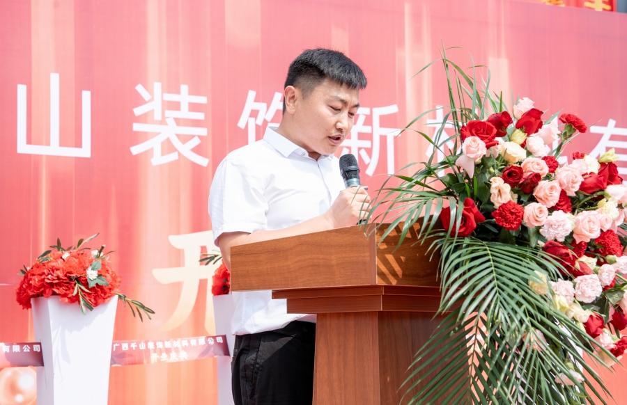 隨后,廣西千山裝飾新材料有限公司總經(jīng)理邵廣峰發(fā)表講話。邵總表示,廣西生產(chǎn)基地將秉承集團(tuán)的發(fā)展宗旨,在政府和協(xié)會(huì)的領(lǐng)導(dǎo)下,整合利用市場(chǎng)資源優(yōu)勢(shì),加強(qiáng)管理、提升技術(shù),以高昂的熱情積極投身于各項(xiàng)生產(chǎn)經(jīng)營(yíng)活動(dòng),助力集團(tuán)的高質(zhì)量發(fā)展,同時(shí)為推動(dòng)行業(yè)的發(fā)展作出應(yīng)有的貢獻(xiàn)。