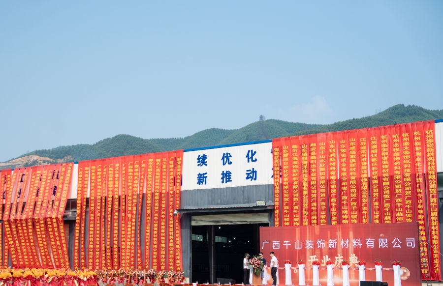 2024年5月25日,千山集團(tuán)廣西生產(chǎn)基地——廣西千山裝飾新材料有限公司終于揭開(kāi)神秘面紗,在廣西融安縣浮石工業(yè)園區(qū)正式落地,開(kāi)業(yè)典禮于公司園區(qū)盛大舉行!