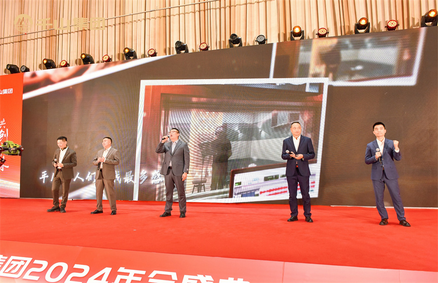 千山集團(tuán)副總經(jīng)理王松、千山集團(tuán)副總經(jīng)理邱佃樓、千山集團(tuán)慧迪公司副總經(jīng)理王文虎、千山集團(tuán)慧迪公司副總經(jīng)理于常成、千山集團(tuán)慧迪公司副總經(jīng)理劉飛共同發(fā)表新年致辭,為2024年碩果喝彩,展望踏浪而升的2025!