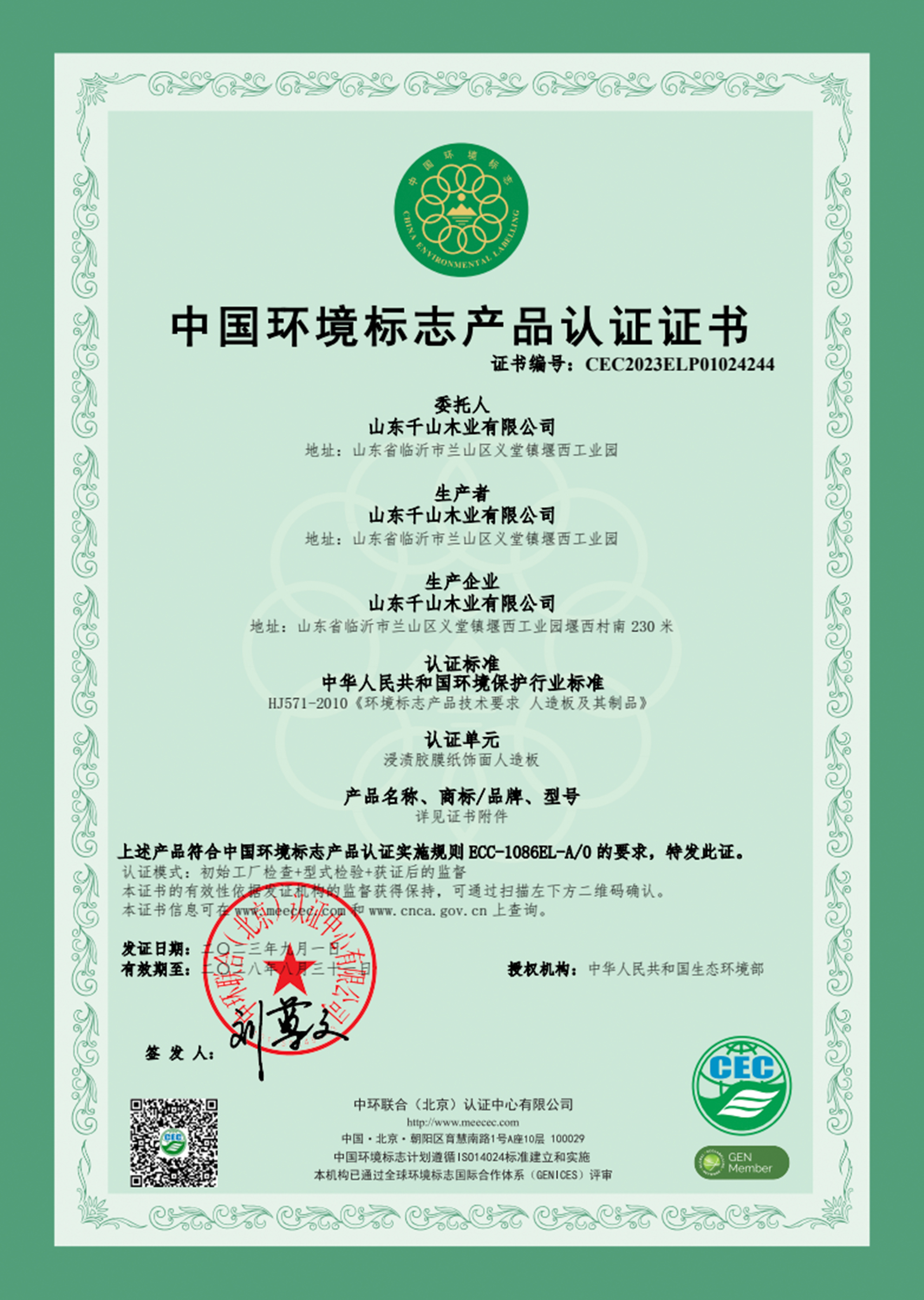 回顧千山的環保進階之路,始終順應國際環保發展的要求,積極推進產品的綠色認證,構建覆蓋全產業鏈的環保產品體系,贏得市場的認可與信賴。2019年,千山無醛級大豆膠板材成功上市,引領板材行業進入植物豆膠新時代;通過了國內最高級別的環保產品認證——中國環境標志產品認證(十環認證),并獲得中國綠色產品認證證書、環境管理體系認證證書、質量管理體系認證證書;2023年千山再次順利通過“全球最嚴苛的”森林認證——FSC森林認證。
