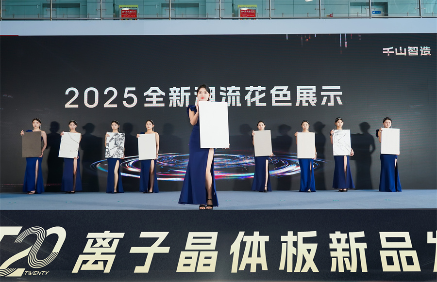領導嘉賓們共同登臺,進行T20離子晶體板首發的啟動儀式。千山T20離子晶體板的正式上市,不僅標志著千山板材正式邁入“離子晶體板”時代,更預示著千山向著更高智造標準跨越式進階。