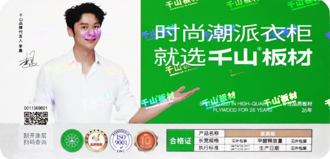 千山板材產(chǎn)品在生產(chǎn)過(guò)程中,均加入了可鑒別、可查詢的防偽標(biāo)識(shí),正品千山板材均有防偽商標(biāo)及防偽編碼。