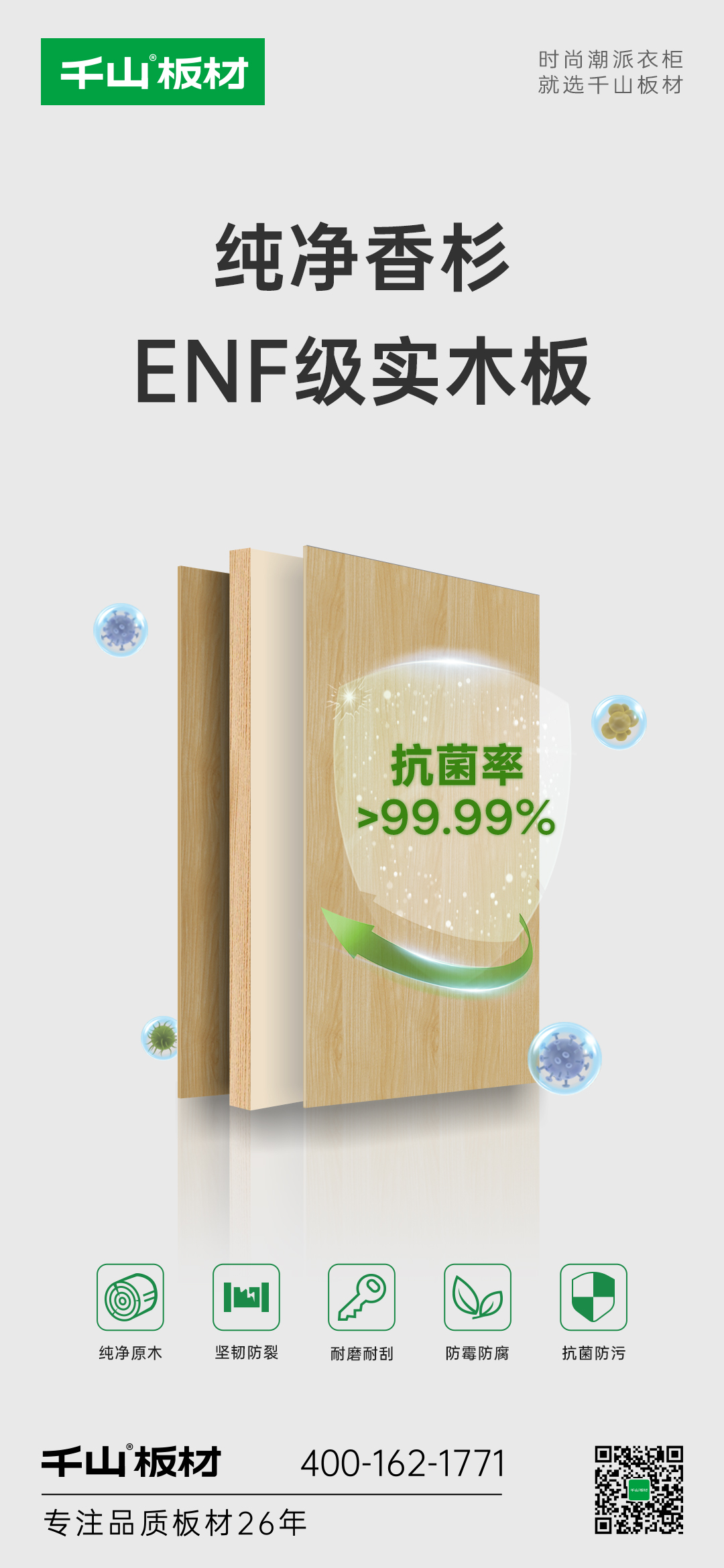 千山板材實(shí)木板順勢(shì)而生,甄選天然香杉木為原料,自帶原木醇香,實(shí)木芯性能更優(yōu)異,環(huán)保達(dá)國(guó)標(biāo)最高ENF級(jí),用品質(zhì)呵護(hù)我們的家居健康。